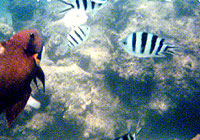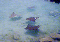 海がすごくきれいで、ビーチで泳いでいる時や桟橋を歩くだけでもいろんな魚を見る事ができます。 桟橋ではエイの群れが編隊を組んで泳いでいました。 このエイ達は毎日見ましたね。 Photo:桟橋
