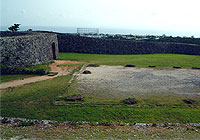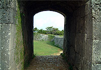 過去と未来を繋ぐトンネルの日陰で休憩。。 歩き続けると倒れてしまいそうです。 「7月なのにこんなに暑いんだ〜」 きれいな城壁です。 アールとエッジがこんなにきれいな石積みはなかなかお目にかかれません。 Photo:座喜味城跡