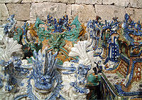 駐車場近くで見つけたきれいな陶器。 「きれいだな〜パシャ!」 写真を撮ってから脇にあった案内板に目を通すと「骨壷」と書かれていてビックリ。 一先ず合掌。。 「雨ざらしだけどいいのかな〜」 Photo:座喜味城跡