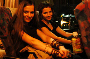 可愛いなぁと、ずっとチラチラと盗み見ていた二人が駿河君の知り合いと分かり、ラッキーとばかりに彼に通訳を頼んで車内で撮らせてもらう。 |