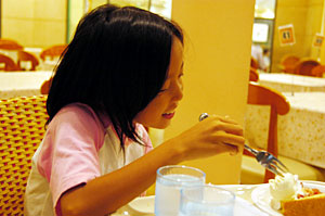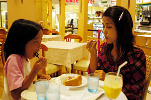 食事は洋食のお店で食べたが、ほとんど話ができなかったので、喫茶店で甘いものを。 楽しそうに食べてくれて、ありがとう。 |