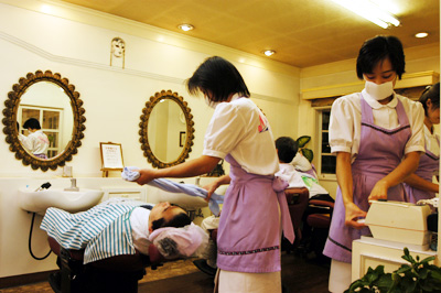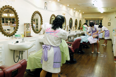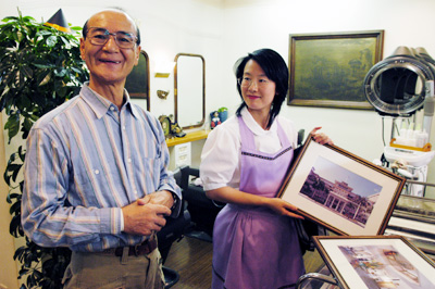 そして、お店の内外を一通り撮影し終えた頃に、ステキな笑顔ともに社長の尾瀬さんが登場。 お話を聞くと、なにやら写真歴も長く、腕もプロ並みであることが判明。 しばし、カメラ&写真談義を。 社員旅行でハワイに行った時に社長が撮影されたホテルの写真を見せていただいたり、理容学校のパンフレットを見せていただいた。 元々の写真には路上の車が数台写って邪魔だったようですが、社長自身がフォトショップで消し去ったとのこと。 撮影だけではなく、後処理のほうも見事な腕で驚きました。 右側の女性が今回担当してくれた方です。 ボクの髪を切ってくれただけではなく、社長に撮影許可の申し入れの電話をしてくれたり、色々お世話になりました。 |