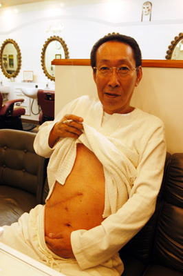 今井さんは、なんの気負いもなく、ざっくばらんな人で、手術の傷跡も快く撮らせてくれました。 一見強面風でありながらも、チャーミングなところが見え隠れして人間味溢れる方です。 |