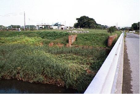 見えている川は綾瀬川。現在は見沼代用水は綾瀬川の下を潜っているが、かつては上を通っていた。レンガは綾瀬川の上を通った見沼代用水の川床を支えた橋桁のような土台。明治時代のもの。最初に江戸時代に築造した時は木製だった。