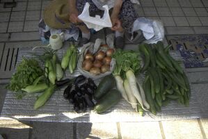 地元のおばあちゃん達があちこちに座って、夏野菜を山盛りで売っています。