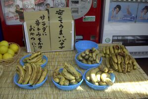 このあたりではバナナに辛子味噌をかけるのでしょうか???