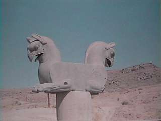 BC550年キュロス2世がメディア王国を倒してアケメネス朝ペルシア帝国の基礎を築き、続くダリウス1世が首都としてペルセポリスの建設を開始する。建造は、クセルクス1世,アルタクセルクス1世,クセルクス2世に引き継がれ、アケメネス朝の滅んだダリウス3世の時代まで続いたと言う。(「JTBポケットガイド133」より)